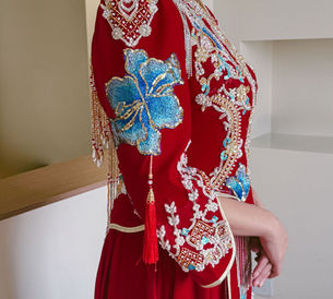 Xiu He Fu 秀禾服 is modern, beautifully detailed outfit showcasing intricate beadings and stunning embellishments — perfect for our brides looking to stand out.